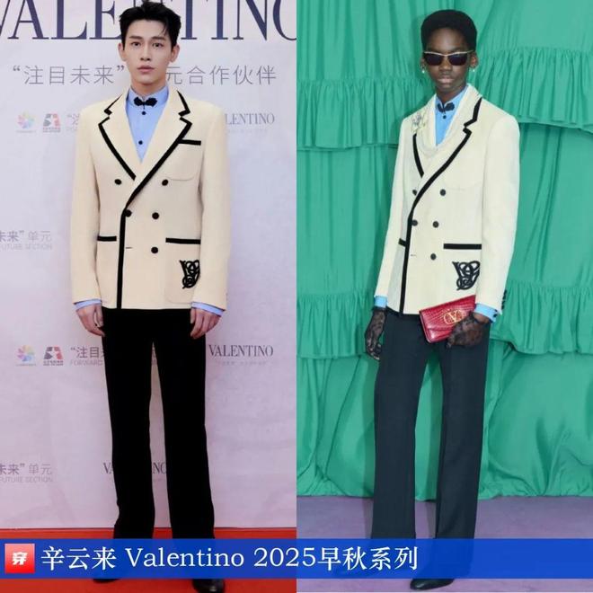 辛云来,第15届北京国际电影节“注目未来”单元荣誉典礼。黑色滚边白色双排扣西装:Valentino 2025早秋系列。