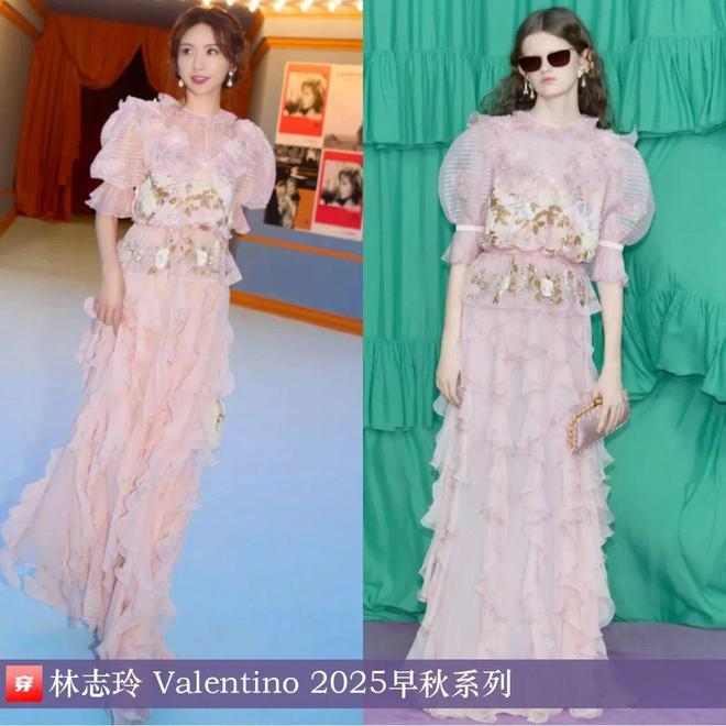 林志玲,第15届北京国际电影节“注目未来”单元荣誉典礼。裸粉色宝石装饰皱褶花边连衣裙:Valentino 2025早秋系列。