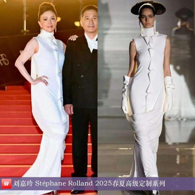 刘嘉玲,第43届香港电影金像奖颁奖礼。白色高领无袖礼服:Stéphane Rolland 2025春夏高级定制系列。