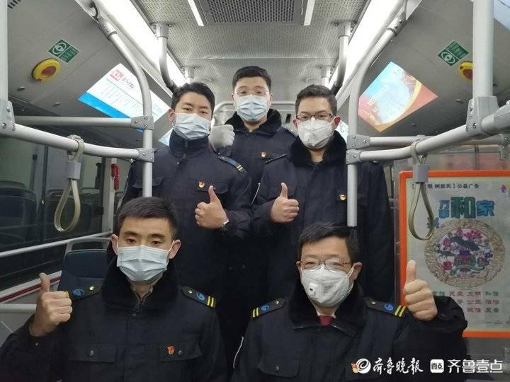 这张照片是2020年2月12日济南公交k3路突击队成立时拍摄的,在车厢内的这两张是2020年2月17日凌晨,工作人员慰问驾驶员时用手机拍摄的。