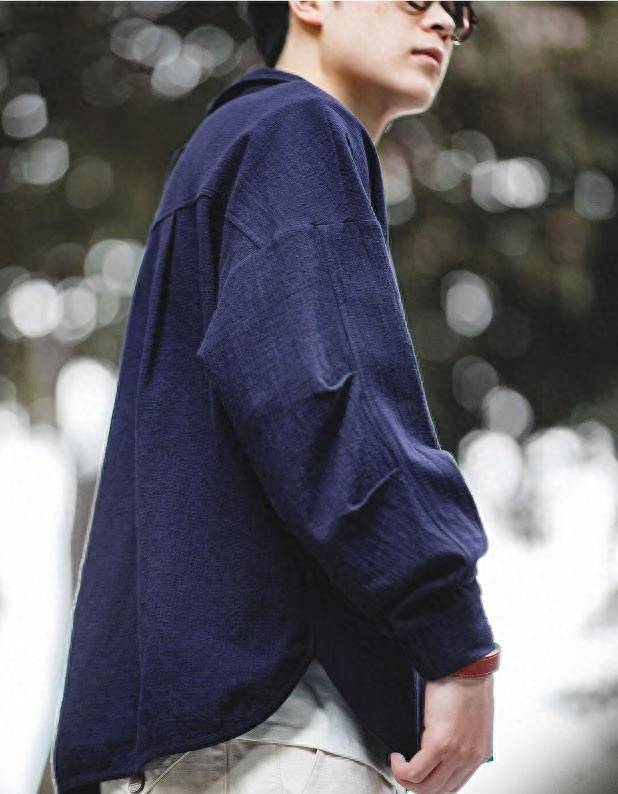 胸前的小贴袋点缀增加了层次感,更有辨识度。衣服下摆采用弧形开衩设计,增加了衣服整体的宽松度,让层次感更有品位,凸显细节。介绍得很好。