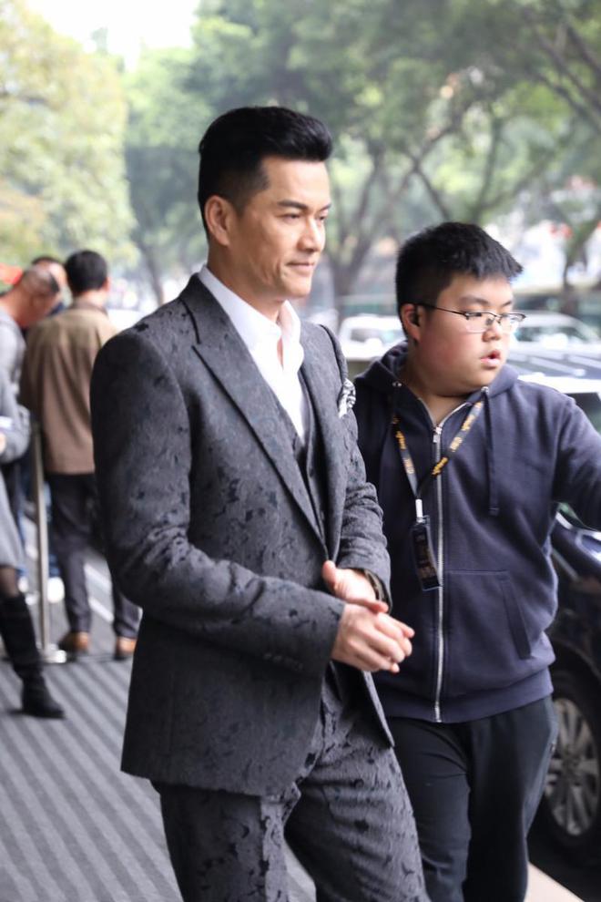 儿子再长大些的时候,还是胖乎乎的。穿着深灰色的运动服和深灰色的运动裤,极其接地气。再反观吕良伟,穿着灰色印花西装,身上没有一丝赘肉,身材挺拔,气宇轩昂,比儿子瘦一圈。