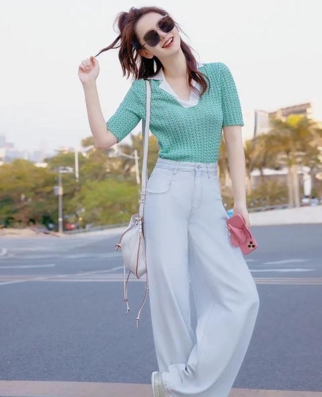 平淡无奇、略显单一的polo衫遇上走路带风的阔腿裤,简单清爽,不仅十分显腿长,看上去也更加随性又潇洒,气场十足。夏天就很适合这样造型搭配。