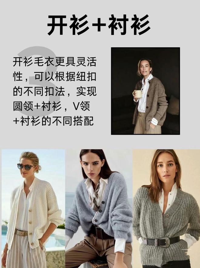 这个秋天流行3款“秋季衫”,首先提到的就是针织开衫。它舒适软糯、细腻温柔,开衫款式穿脱更加自由,及腰的长度也不会压个子。