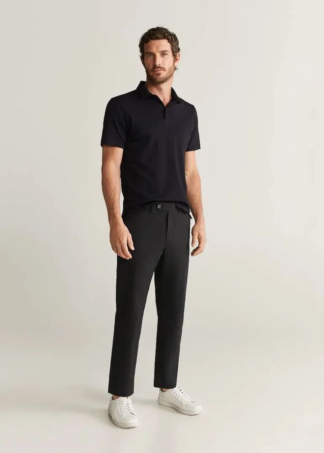 休闲裤比西装裤面料硬朗一些,垂坠感也相对减弱。但POLO衫组合休闲裤将POLO衫的整个风格变得平缓,反而让造型更加干净,完全没有任何的违和。上下同样纯粹清晰的款式整个人看起来绅士又大气,优雅男士轻松呈现。