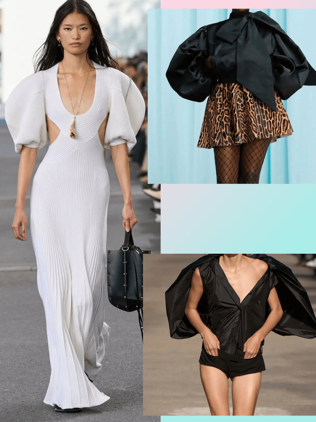 造型感的夸张袖子、经典条纹、光滑面料、镂空设计、改良衬衫、设计感西服等这些设计元素的结合,而时尚也远远不仅只是这些,时尚是包容的,是包罗万象的,也是一个丰富的,五彩斑斓的世界。