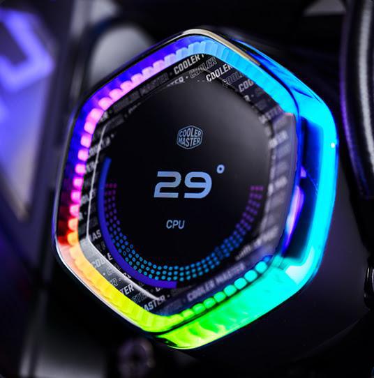 2.1寸的屏幕是酷冷至尊至今为止在散热器上配置的最大屏幕,第二代ARGB六边形效果灯,搭配用酷冷至尊最新的控制软件MasterCRTL,可以发挥出全部的实力,拓展出丰富的玩法。