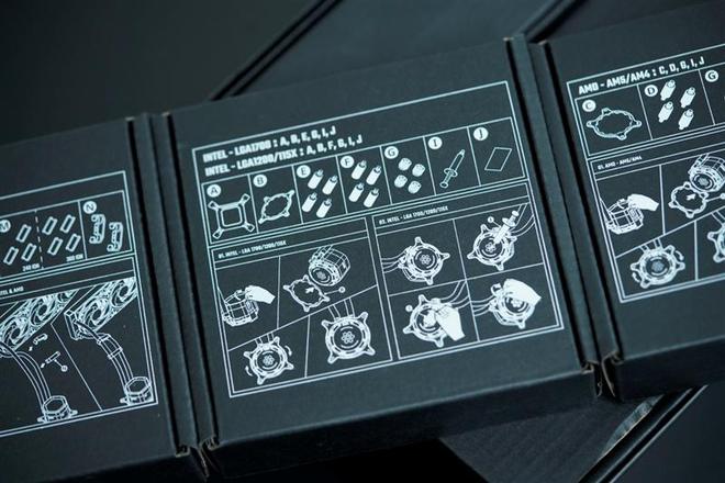 打开内部,可以看到酷冷至尊把AMD平台和Intel平台的扣具分别收纳在独立的盒子中,对应的安装步骤印在了每一部分零件的包装盒上,方便用户按照指引顺利安装。