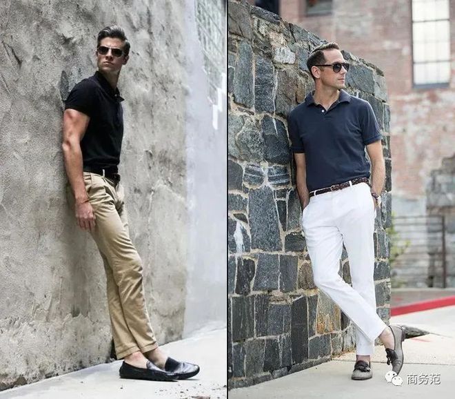一般情况下,Polo衫有两种比较常见的穿法,把领口豁开,或者是把扣子全部扣好地穿,但千万不要把领子立起来穿,画风会非常奇怪,就算颜值高的男演员,也翻车...一般人更不要轻易尝试。