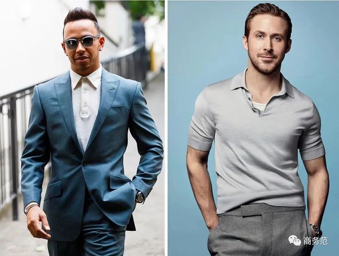 所以大家平时穿Polo衫的时候,最好还是选择这两种比较安全的方法:把扣子全扣好地穿,显得很精神、有气质;领口敞开的穿法就更加休闲、度假。下图中的汉密尔顿和高司令,就是比较好的借鉴模板~