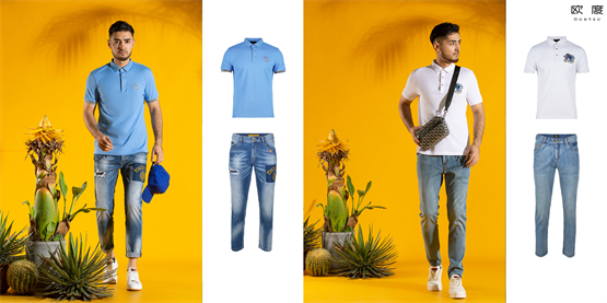 彩色Polo衫搭配什么裤子?牛仔裤准没错!牛仔一直以来都是穿搭界最好穿的单品,与Polo衫组合在一起,瞬间打破偏正式风格。欧度夏款蓝色Polo衫,搭富有设计感的磨白牛仔裤,金色刺绣和破洞元素丰富细节,整体给人一种活泼、轻盈、凉爽的视觉感受。裤脚处随意卷边露出脚踝,烘托慵懒气氛,街头雅痞范十足,显高显瘦,明艳吸睛。
