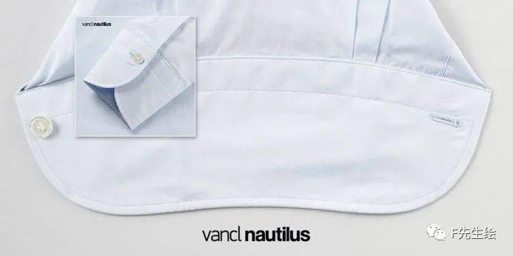 这样的明门襟两侧和衬衫前片有一定距离,使得明门襟更具有立体感,更加挺拔,也是英式衬衫风格的体现。