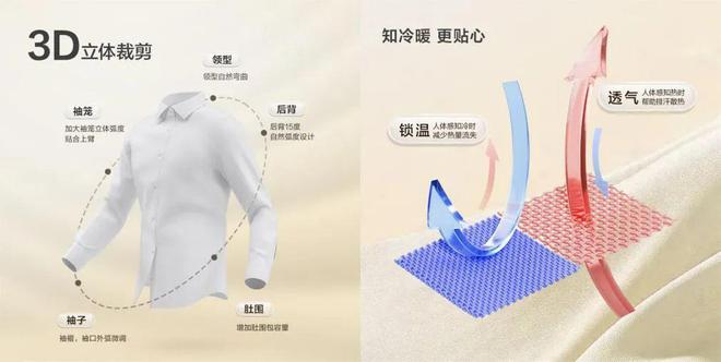 值得一提的是,“0感舒适衬衫”创新地运用了来自瑞士的HeiQ智能控温科技,赋予了面料一种神奇的能力——感知外界温度的变化,并自动进行调节。这种“热缩冷胀”的智能温控效果,使得穿着者在任何气候条件下都能享受到恰到好处的舒适感。