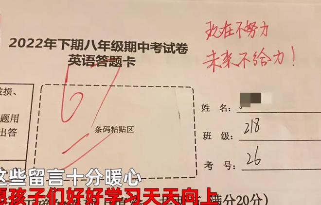 据了解,给孩子们写评语的是一名乡村女教师,她所任教的科目是英语,为了鼓励班里的孩子,她在每个人的答题卡上都认真留下了评语。