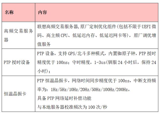 定制化:联想超低时延解决方案是专门为高频交易类业务定制的方案,定制内容包括UEFI微码、高主频CPU、低延迟内存、低延迟网卡等部件。