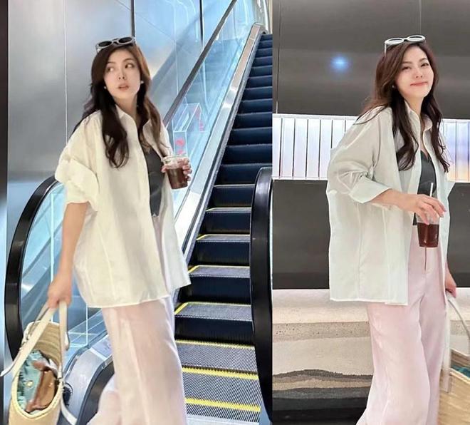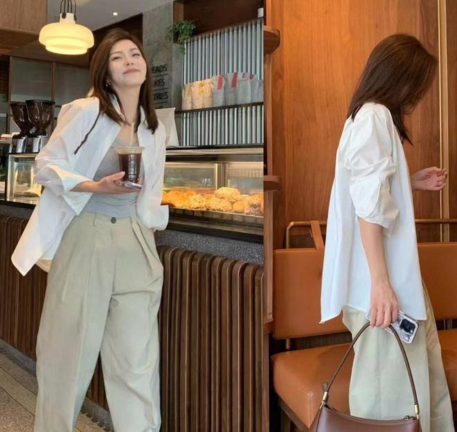 衬衫的宽松设计很容易包容上半身的不足,但也会导致外形轮廓的增大,如果下装继续配合阔腿裤的话,就会使整体的松弛感很突出。