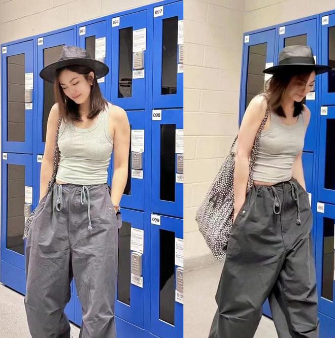因此这位女士在塑造穿搭时,内搭的上衣选择的是紧身背心,与其它单品形成了宽窄上的对比,从而恰到好处的平衡了这身装扮。