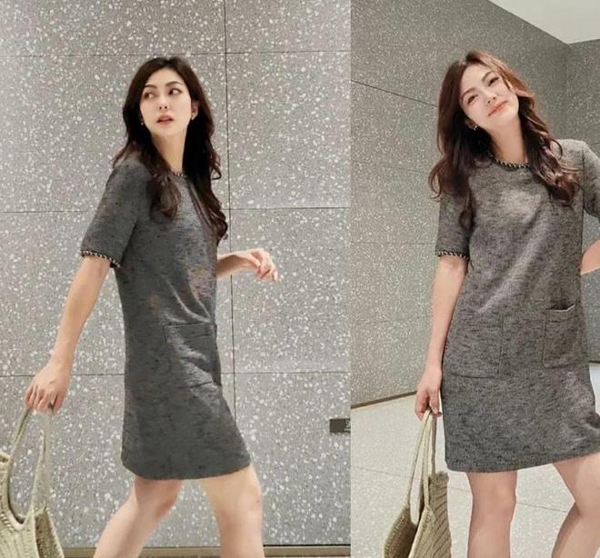 虽然依旧是宽宽大大的衣身设计,但因为短裙下保留了充足的露肤面积,使双腿的纤细感中和了裙身的松垮感,看起来就不会显得外形很拖沓拉垮。