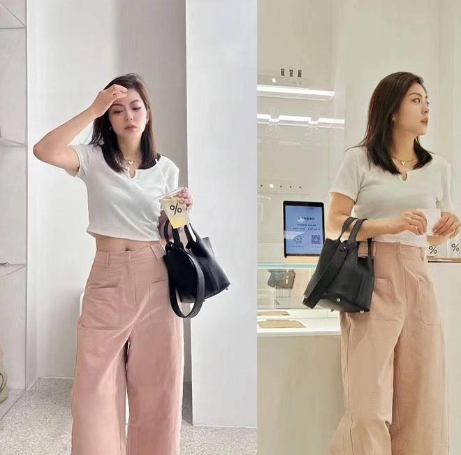 当然一些女性可能会顾忌短上衣容易露出肚子,暴露出赘肉的存在,那么穿着长一些的上衣也未尝不可,只是这时匹配阔腿裤时,可以将衣摆稍稍扎入裤子中,一样可以呈现出又瘦又高的感觉。