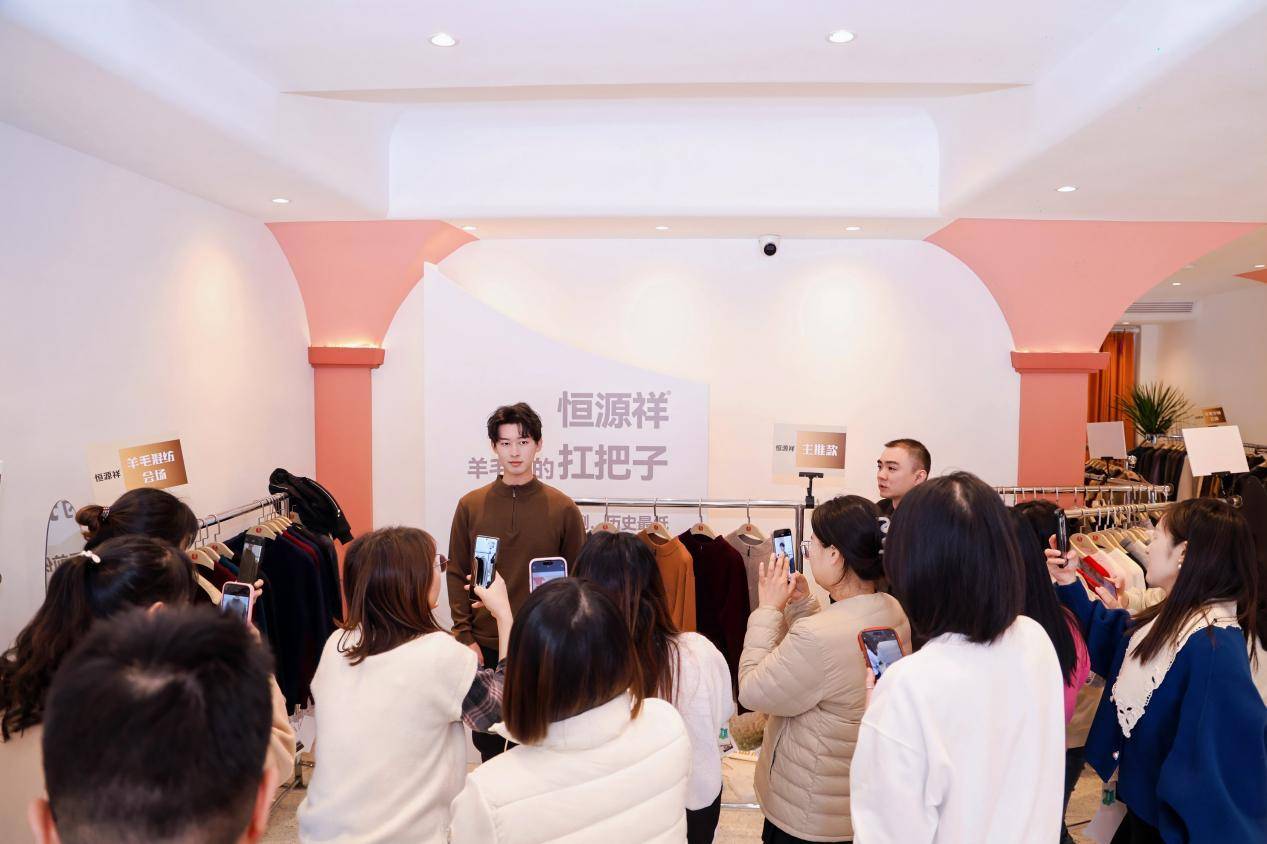 恒源祥服饰在宽敞的空间中优雅陈列,产品线丰富多样,包括男装、女装、妈妈装三大系列,涵盖套头针织衫、连帽衫、开衫、立领Polo衫、高领羊毛衫、裤子等多种单品。店主们亲自体验服饰品质,捕捉第一手素材,为社群预热,为即将到来的品牌活动做好准备。