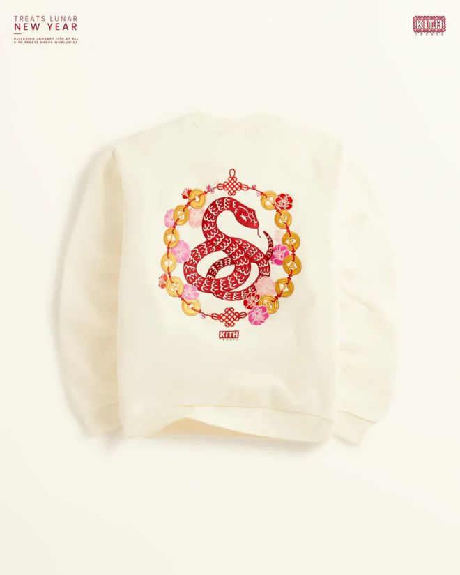 背后则是有蛇年的主题图案刺绣,该说不说Kith团队对中国文化钻研得还是挺到位的,颜值方面算是众多品牌CNY系列里不错的存在。