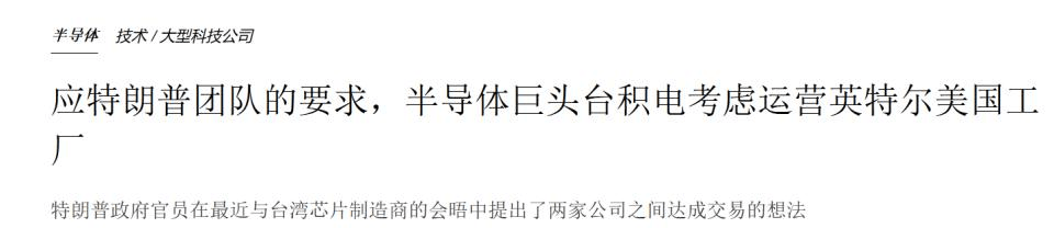 果不其然,有媒体爆料,台积电正在考虑收购事宜,这也说明了,跪久了就站不起来了。即使美国的要求十分霸道且无理,但台积电根本没有拒绝的余地,台积电早就已经沦为“美积电”了,即使明知英特尔美工厂是个烂摊子,也只能含泪拿下。