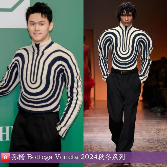 孙杨,第七届全球风格论坛。黑白漩涡织花毛衣:Bottega Veneta 2024秋冬系列。