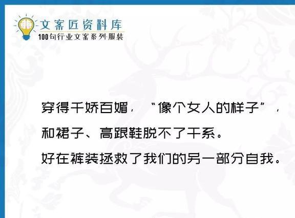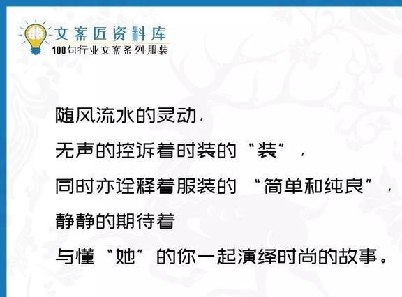 pg电子游戏官方网站100句服装行业好文案给你灵感!(全)100句行业好文案系列服装篇,分享了上篇,今天继续。依旧是来自各个品牌,从资料库挑选100句给你们。
