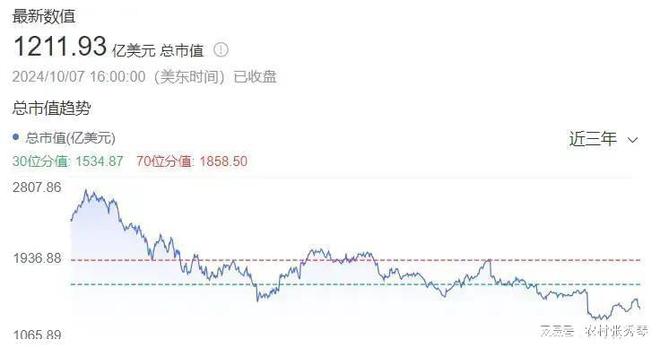 自从2021年抵达巅峰之后,耐克市值就开始跌跌不休,从超过2600亿美元暴跌到1210亿美元左右,跌幅过半。