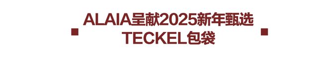 为迎接2025中国新年,法国高级时装品牌ALAÏA推出甄选单品酒红色LE TECKEL包袋,标志之作焕新呈现,传递节日气息。系列广告大片由超模贺聪出镜演绎,Tyrone Lebon掌镜拍摄。贺聪身着ALAÏA全新WS25 ARCHETYPES系列连衣裙,搭配LE TECKEL包袋,柔和粉调映衬复古酒红,塑就点睛造型,展现东方女性气质,捕捉新年明媚氛围。