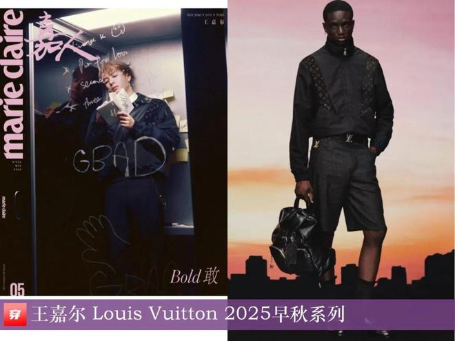 王嘉尔,《嘉人》2025年5月刊。黑色提花拼接夹克:Louis Vuitton 2025早秋系列。