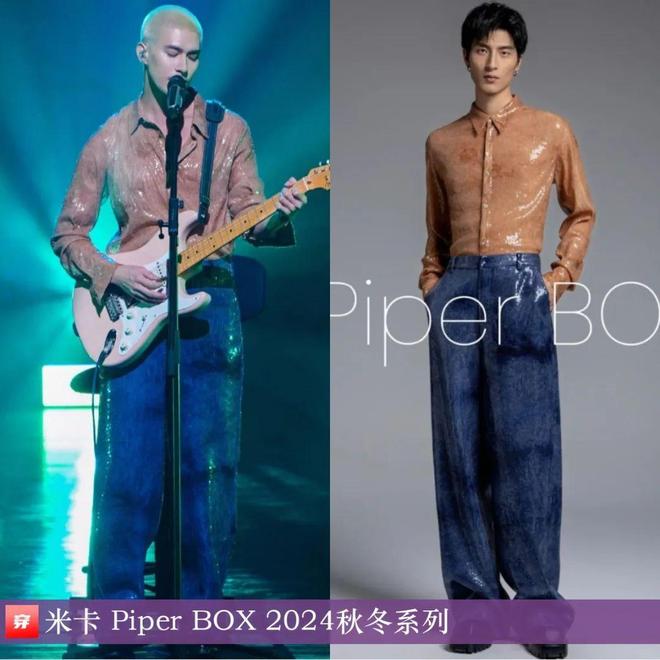 米卡,2025「一米」巡演潍坊站。橙色亮片长袖衬衣、pg电子网蓝色亮片阔腿牛仔裤:Piper BOX 2024秋冬系列。