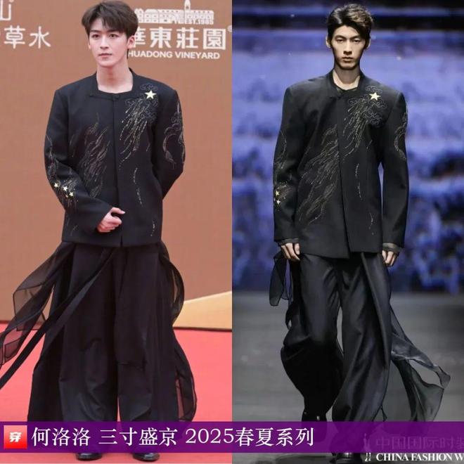 辛云来,第15届北京国际电影节“注目未来”单元荣誉典礼。黑色滚边白色双排扣西装:Valentino 2025早秋系列。