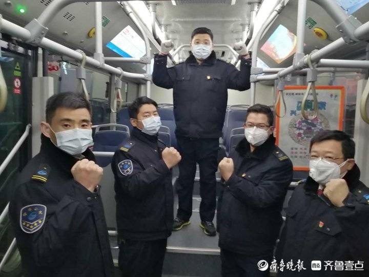 这张照片是2020年2月12日济南公交k3路突击队成立时拍摄的,在车厢内的这两张是2020年2月17日凌晨,工作人员慰问驾驶员时用手机拍摄的。