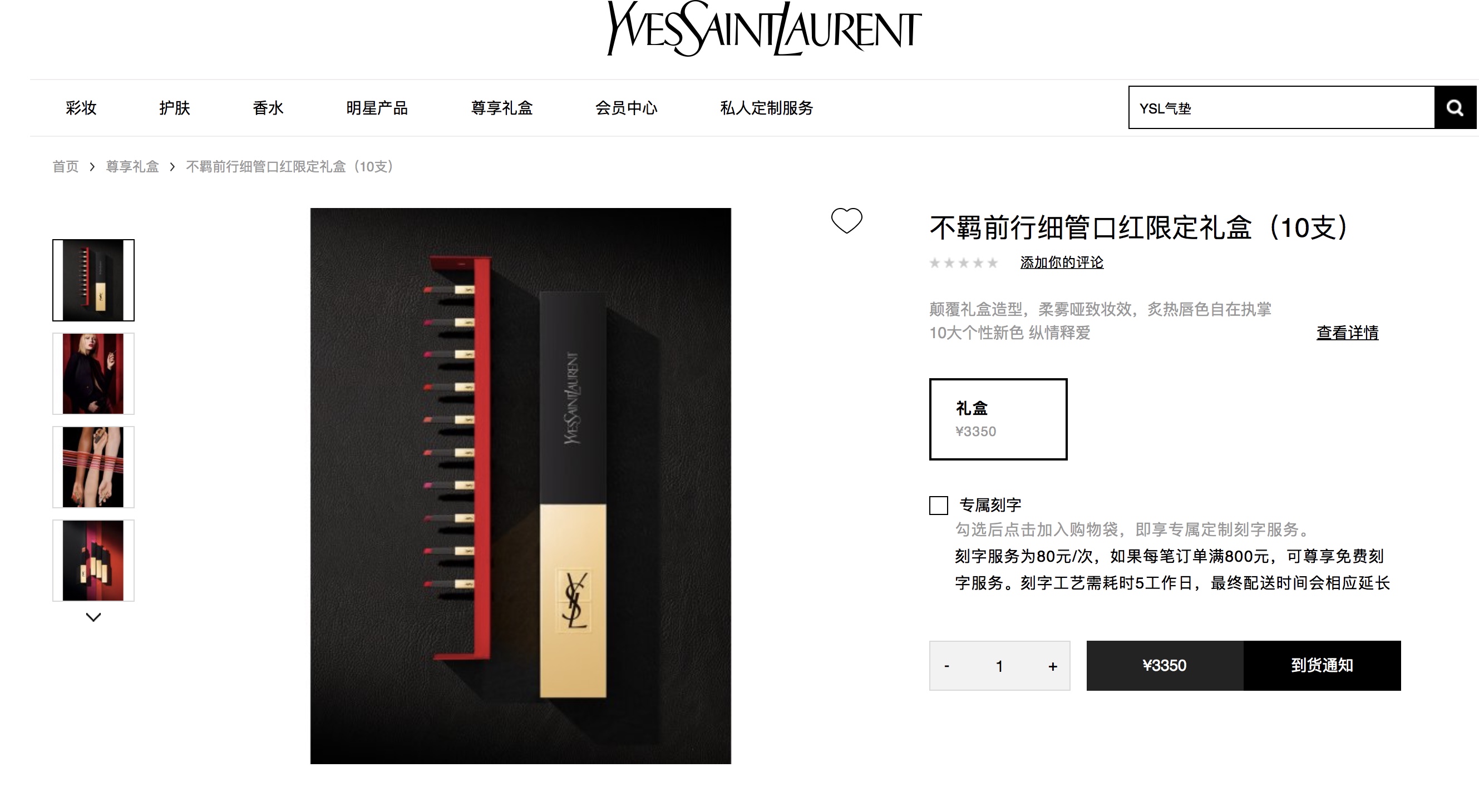 或许是消费者的热情让品牌看到了“小金条”口红的“春天”,YSL在其官网发售了“不羁前行细管口红限定礼盒”,3350元的价格并不“亲民”,但想买依旧要选择等待。