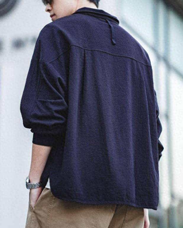 胸前的小贴袋点缀增加了层次感,更有辨识度。衣服下摆采用弧形开衩设计,增加了衣服整体的宽松度,让层次感更有品位,凸显细节。介绍得很好。