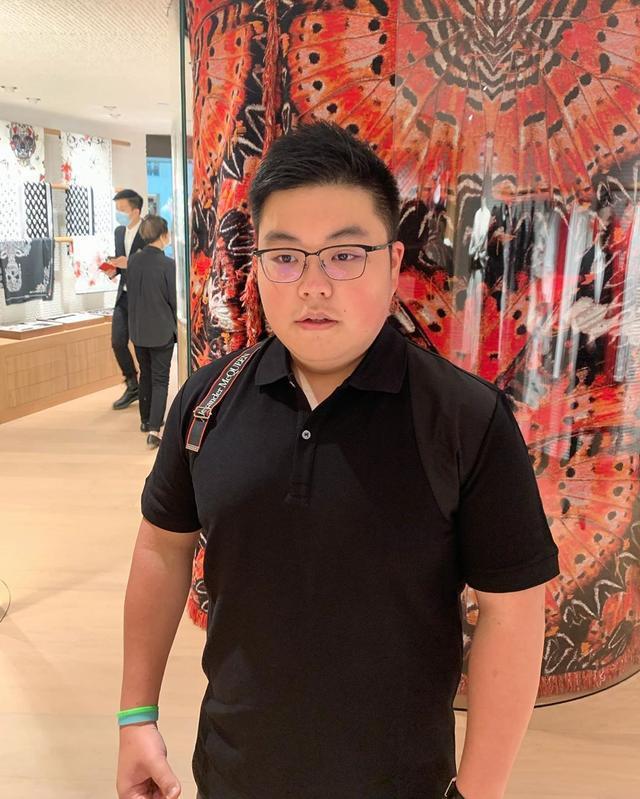吕良伟的儿子也出镜了。他完全没有继承老爸的帅气基因,长得十分的普通,但是看起来很憨厚。大概是因为小200斤的身材,所以喜欢全身上下都穿黑色的衣服,戴着眼镜,看起来很有文化感。手上戴着一块运动手表,跟全身的服装很搭。他看起来对形象确实不是很重视,裤兜里放了许多的东西。