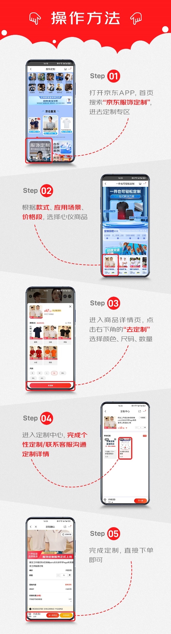 通过新近上线的京东服饰定制服务,学生朋友们可以随心定制自选图文,只要按照商品页面的服务引导进入定制界面,即可自行上传素材或选用现成图片素材,预览定制效果,并选择电脑刺绣或热烫印工艺完成定制,最快当天下单当天发货。