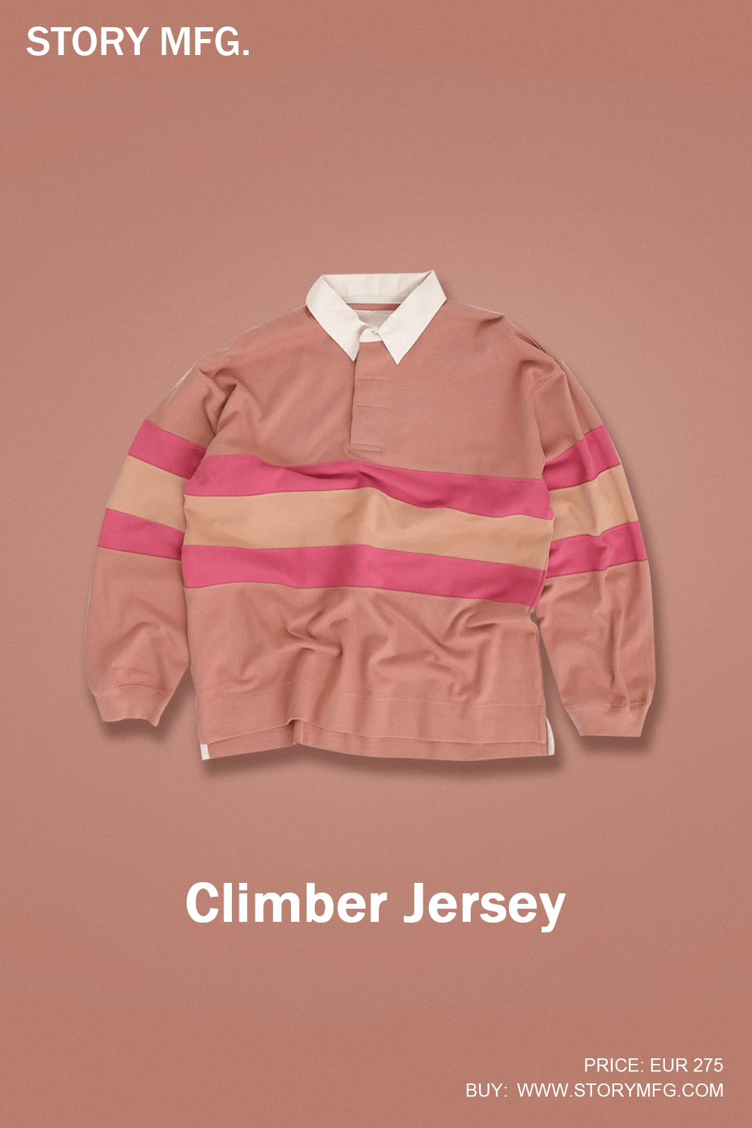 延续 STORY mfg. 一贯的设计美学,这件 Climber Jersey 运用了生态友好的植物染色工艺,呈现出颇具自然光泽感的细腻粉调,如此抢眼的配色直接满足你春夏季节的造型需求。