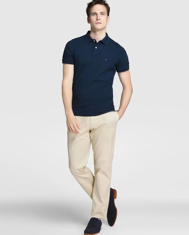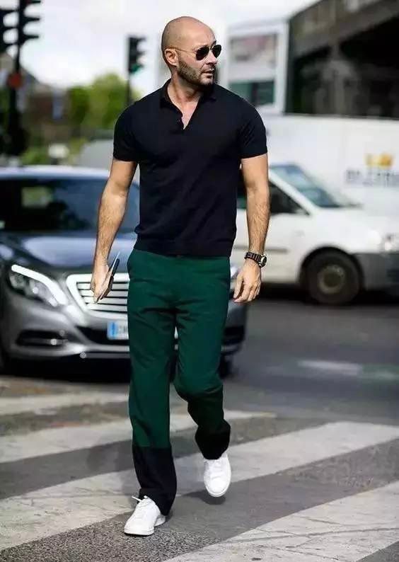 POLO衫的高级感在胸口简单的做个logo就足够完美,但很多人为了丰富造型的休闲感,会选择色系拼接和格纹的样式,单看这两个风格有些违和,但组合到一切却给人一种型男魅力,暗纹细节更是提升格调的重要点缀。