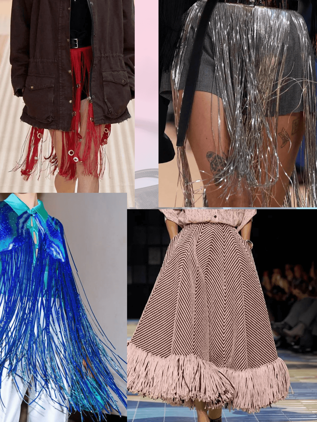流苏元素装饰在裙摆下摆、上衣下摆等这些位置,在流苏元素装饰的走动之下,也有了一些动感活力的韵律气质。