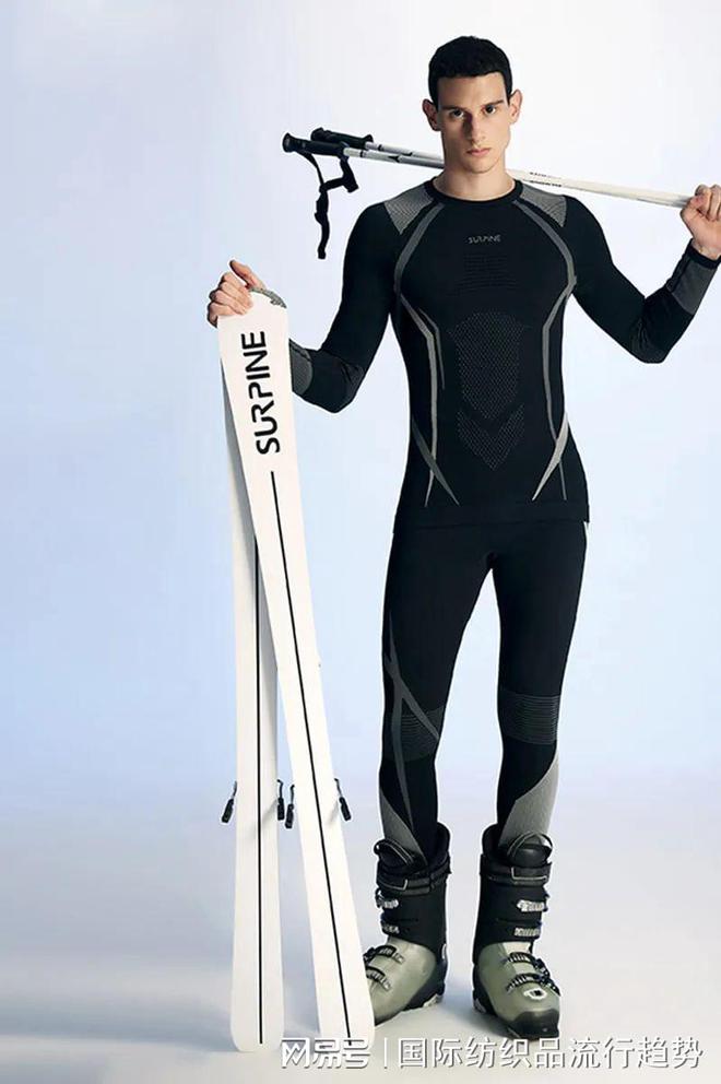 滑雪打底衫主打贴紧皮肤增加保暖特性,运用功能性纱线增加贴身穿着时的保暖性,运动时穿着要求吸湿排汗性较强,在外观美化设计中运用文字、线条的密集排列增加运动速度感,在毛衫中增加挑孔、提花、pg电子官方网站罗文等针法变化打造运动感时尚打底衫。