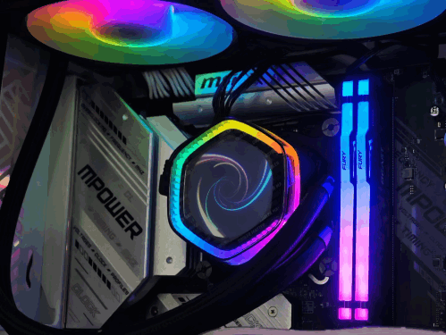 使用二代灯珠的水冷头六边形光带和莫比乌斯120P ARGB风扇的灯效非常出色,绝对是当今RGB海景房的顶级天花板。