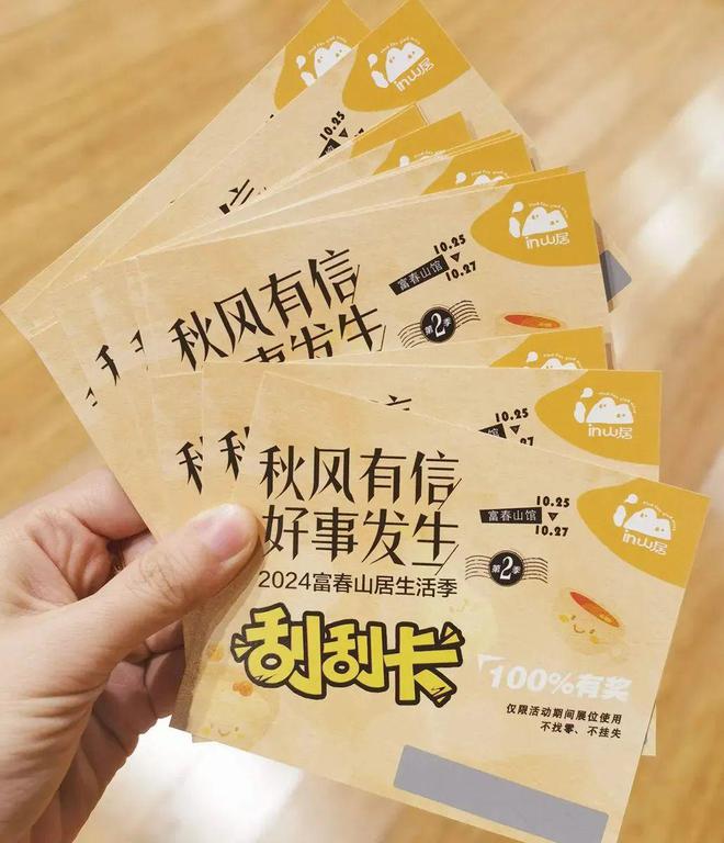 这次生活季给市民朋友准备了“拼手气”礼物——刮刮卡,并且是10000张,且每张都有奖,包含的礼物有“达夫的朋友们”富阳龙井调味茶饮、米酒豆花代金券、10元无门槛咖啡代金券、“小小岛”出品国潮手机支架等等。