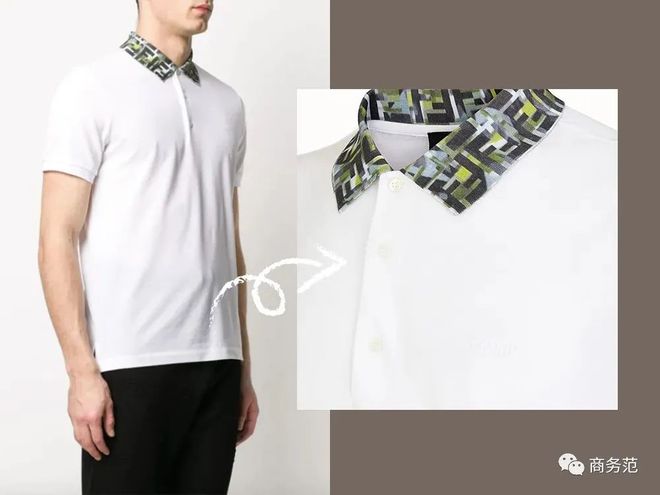 这一季,Fendi也推出了一款很好看的男士Polo衫,来自于Fendi Fun Formal系列,设计理念是在正式场合的穿着中,打破沉闷,拥有一丝活力,这款Polo衫也是这种设计,整体标准剪裁,领口改成活泼印花设计,十分亮眼。