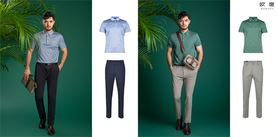 轻商务风格选择面料丝滑柔软的绿色Polo衫,搭配浅灰色休闲西裤。独特的色彩时髦吸睛,配系带皮鞋增添摩登复古气息,穿出气质稳住气场,并且不显油腻不显老气。商务场合穿着Polo衫搭西裤,建议把下摆收进裤子里,露出品质高级的皮带,彰显身份的同时拉长腿型,走路生风!