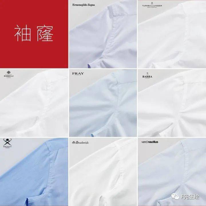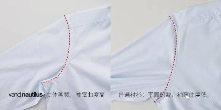 参加比较对比的衬衫均采用了高曲度的袖窿,体现了对衬衫合身度的追求。而袖窿曲度越高,对车缝工艺的要求就越高。
