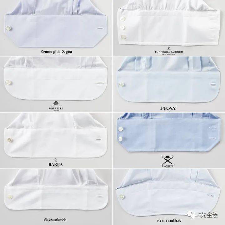 这样的明门襟两侧和衬衫前片有一定距离,使得明门襟更具有立体感,更加挺拔,也是英式衬衫风格的体现。