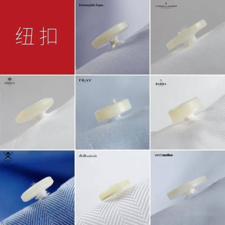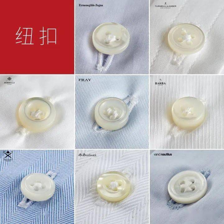 衬衫纽扣可采用的材质较多。比较优质的正装衬衫上普遍用两种贝壳扣:一种是马蹄螺扣,另一种就是白蝶贝扣。