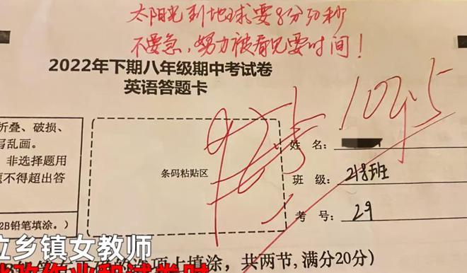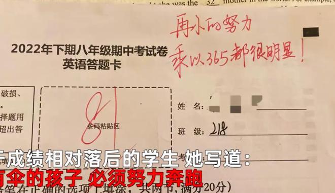 据了解,给孩子们写评语的是一名乡村女教师,她所任教的科目是英语,为了鼓励班里的孩子,她在每个人的答题卡上都认真留下了评语。